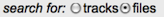 To display or download ENCODE data, select either the tracks or files option in the panel, then click the appropriate box in the matrix grid (or row in the summary tables). This will display a search window (via the UCSC Track Search or File Search tool) that lists the full set of browser tracks or downloadable files for the selected experiments. This window also provides options to configure the browser view or refine the list of downloadable files.